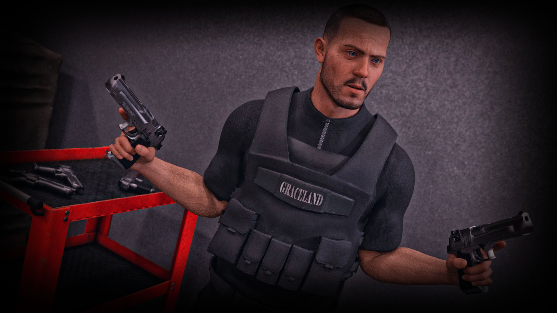 Desmond is about 2 meters (6.6 feet) tall and is just a mountain of muscle. The combination of raw strength and a fun-loving, goofy personality attracts women. And I must say, he's far from the modest type. The only thing that holds as big a place in his heart as women is guns. Desmond is a heavy weapon specialist.